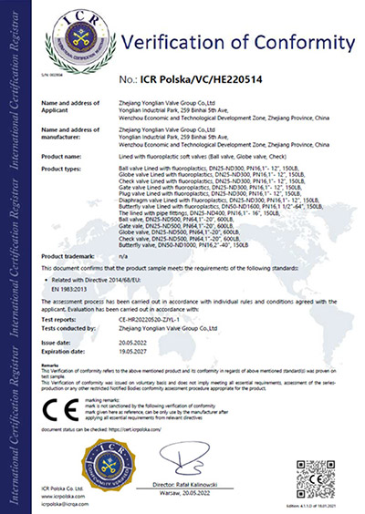 浙江省工业新产品证书-耐负压衬氟蝶阀