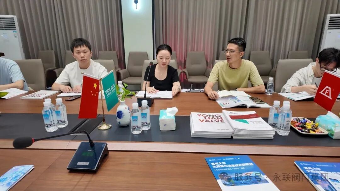 近日,温州大学激光与光电智能制造研究院、温州大学新材料与产业技术研究院、温州大学大数据与信息技术研究院及杭州电子科技大学温州研究院各院负责人莅临浙江永联阀门集团有限公司开展指导与交流,公司总经理沈民侠以及相关人员全程陪同。
